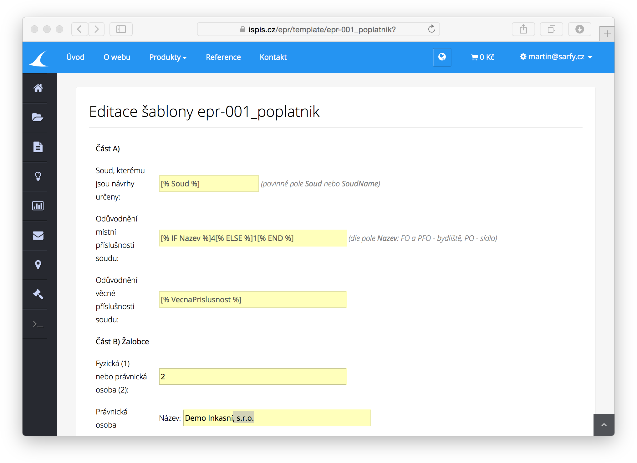 Správné vyplnění návrhu na vydání ePR není jednoduchou záležitostí, náš systém jej však zjednodušuje na maximální možnou míru. Aplikace umí sama určovat místně příslušný soud povinného, počítat výši soudních poplatků, odměn zástupce či provádět kontroly vstupních dat (rodná čísla, existence adresy).